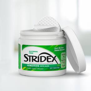 — Tratamento para acne com toalhete facial: as almofadas sensíveis Stridex são uma maneira fácil de tratar a acne e prevenir a formação de acne nova. O Stridex reduz o número de espinhas e cravos e permite que a pele se cure.
