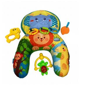 Seu bebê merece um brinquedo que além de divertido, traga conforto.Com formato de meia lua, com um painel que traz um desenho todo colorido. O formato da almofada possibilita ao bebê deitar de bruços, deitar de costas, ou como apoio ao sentar além de vir com vários acessórios que estimulam os movimentos e a coordenação motora do pequeno.