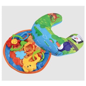 Seu bebê merece um brinquedo que além de divertido, traga conforto.Com formato de meia lua, com um painel que traz um desenho todo colorido. O formato da almofada possibilita ao bebê deitar de bruços, deitar de costas, ou como apoio ao sentar além de vir com vários acessórios que estimulam os movimentos e a coordenação motora do pequeno.