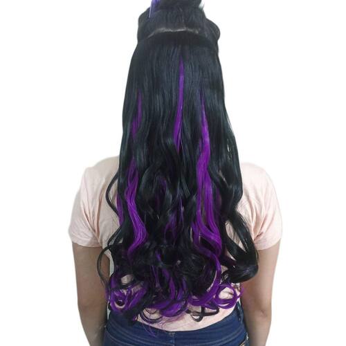 Alongamento Aplique Tic Tac Ondulado Preto Com Magenta 60Cm