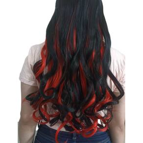 Alongamento Aplique Tic Tac Ondulado Preto Com Vermelho 60Cm