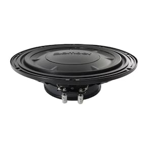 Especificação Técnica: • Subwoofer Slim de 10 Polegadas • 200W RMS de Potência • 4 Ohms de Impedância • Modelo de Bobina Simples • Profundidade: 7,7cm • Qms: 7,79 • Qes: 0,75 • Qts: 0,69 • Vas: 30 L • SPL: 86dB • Deslocamento Máximo: 5,35mm • Resposta de Frequência: 45 a 200Hz