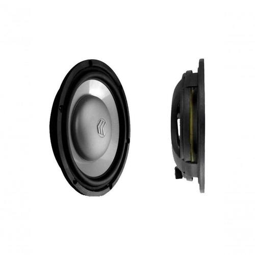 Subwoofer 10? 180W RMS / 4? + 4? 360W PMPO Carcaça injetada em Nylon/Fiberglass Borda injetada em TPR/Santoprene Cone injetado em PGFC (Polipropileno, Fiberglass e Fibra de Carbono) Centragem de grande diâmetro fabricada em tecido Poly-cottom EPP (Pólo Estendido) Bobina móvel dupla, enrolada sobre forma de fiberglass Cordoalhas com capa de Nylon Terminais maciços de latão platinado