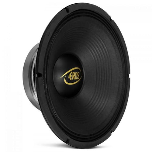 Alto Falante Eros 12P E312 Lc 400Rms 4 Ohms Características: Resposta de frequência 45 ~ 2.800 Hz Sensibilidade 1 w, 1 m - free-air 94,27 Db Potência máxima rms 400W Potência musical 800W Impedância nominal 4 ou 8 Ohms Resistência, re 3,1 ou 5,9 Ohms/vcc Área do cone 0,052 Sq.M Frequência de ressonância 58,2 Hz Volume equivalente 41,81L mecânico 4,34 qms elétrico 0,475 qes total 0,428 qts Produto bl 12,33 Tm No referencial de eficiência 1,16% Compliância cms 116,49Um/n Massa total mms 64,18G Massa diafragma mmd 57,69G Excursão cone sem distorção x max ± 6Mm Densidade do fluxo no gap 9.440 Gauss