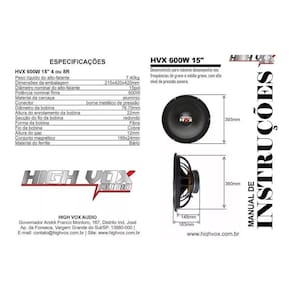 O Woofer HVX é um alto-falante com 600W RMS de 15 polegadas de excelente resposta de frequência proporcionando graves mais encorpados, somando qualidade ao som do seu carro.