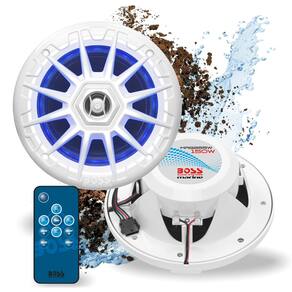 IMPORTANTE: Se for um produto elétrico, ele pode ser compatível com uma tomada de 110 volts. Se utilizado fora dos Estados Unidos, pode ser necessário um conversor de voltagem para garantir a operação adequada. Verifique se o produto que você está comprando é elétrico antes de considerar essas informações. Alto-falantes marinhos BOSS Audio Systems MRGB55W de 5,25 polegadas — à prova de intempéries, 150 watts por par, 75 watts cada, iluminação multicolorida, de ampla variedade completa, bidirecional, vendidos em pares