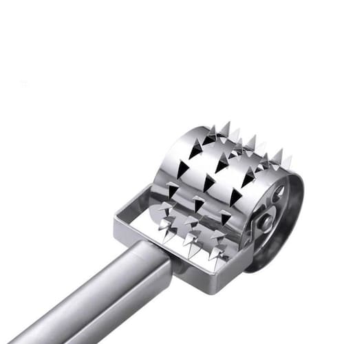 Amaciador De Carne Rolo Manual Inox Amolecedor De Carne Boas ferramentas de cozinha: Este martelo de carne é a ferramenta perfeita para qualquer carne que absorva temperos de forma mais eficiente. Rápido de usar: Este rolo de agulha é forte e resistente, seguro e saudável. É pequeno o suficiente para um trabalho rápido e pode funcionar com precisão. Design exclusivo: Esta ferramenta de amaciante de carne é fácil de usar e economiza tempo, pressionando o rolo, as lâminas podem se mover rapidamente através da superfície da carne. Seguro e conveniente: o martelo de carne tem alça ergonômica facilita o manuseio e mantém os dedos longe de lesões. Organizar espaço: O orifício superior de aço inoxidável para amaciar carne permite que ele seja pendurado à vontade, o que economiza muito espaço na cozinha.