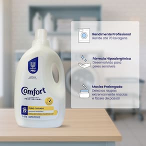 O Amaciante Comfort Puro Cuidado na embalagem de 5 litros oferece a combinação perfeita entre suavidade extrema e proteção para as peles mais sensíveis. Sua fórmula foi especialmente desenvolvida para ser hipoalergênica, sendo a escolha número 1 para a lavagem de roupas de bebês e pessoas com tendência a irritações cutâneas. Com o selo de aprovação de dermatologistas, este amaciante penetra nas fibras dos tecidos, deixando-os incrivelmente macios, com um perfume suave e delicado que não agride o olfato nem a saúde da sua família.