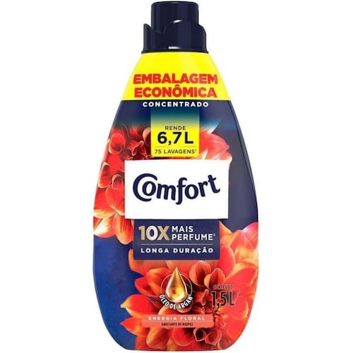 EspecificaçõesO Amaciante Concentrado Comfort tem óleo de argan em sua fórmula!Comfort tem 10x mais perfume!Comfort é concentrado e tem ótimo rendimento, menos de meia tampinha basta!Perfume duradouro que invade a lavanderiaComfort evita formação de bolinhas e o desbotamento das coresCápsulas de perfume que blindam contra o mau odor