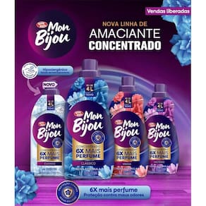 O Amaciante Concentrado Mon Bijou Cuidado - 1L Rende até 4 Litros é ideal para quem deseja roupas macias, bem cuidadas e com um perfume delicado. Sua fórmula foi especialmente desenvolvida para garantir a suavidade dos tecidos, mantendo-os macios por mais tempo, sem perder a durabilidade. Características principais: