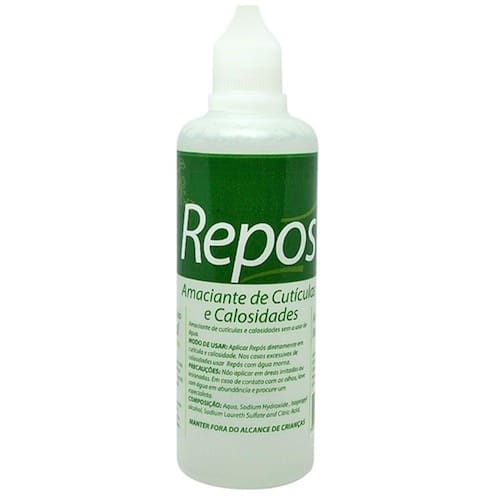 O Amaciante De Cutícula E Calosidade Repos é ideal para quem deseja praticidade na hora de fazer as unhas.Desenvolvido para amaciar as cutículas e calos, mesmo sem o uso de agua. É pronto para o uso, não necessita de bacia para colocar os pés ou as mãos de molho.Simples e fácil de usar, é ideal para remoção de cutículas e calosidades pois já vem diluído, facilitando a operação do profissional.Repós é fácil, prático e rápido, além de ser antibacteriano e biodegradável.