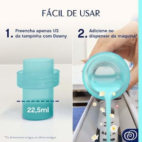 O amaciante Downy 1L é concentrado e rende até 44 lavagens, muito mais do que o mesmo volume dos amaciantes diluídos comuns^. Downy é muito fácil de utilizar: basta despejar a quantidade de líquido, indicada na embalagem, no dispenser automático da máquina de lavar. Caso prefira adicionar o amaciante manualmente, coloque Downy na água no último enxágue, nunca diretamente sobre as roupas para evitar manchas.