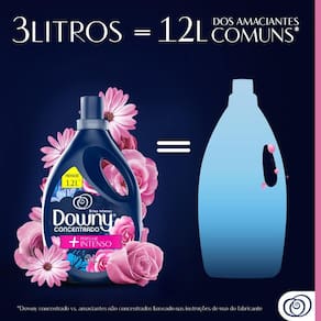 Amaciante Downy Concentrado Brisa Intenso? é uma versão do já conhecido e amado Brisa de Verão, de Downy - marca de amaciantes n 1 do Brasil. Com o mesmo perfume? e longa duração nas roupas, mas agora com perfume mais intenso ?, dando às suas roupas um aroma deliciosamente agradável que as transformará em uma verdadeira experiência de perfume, com notas frutadas e florais. Esse amaciante deixa suas roupas macias, protege as fibras dos tecidos durante a lavagem e facilita a passagem a ferro depois de lavar. Além disso, protege a sua roupa contra maus cheiros, incluindo fumaça, cheiro de fritura e peixe, com o benefício adicional de um perfume mais intenso?. Aproveite esse perfume mais intenso? do seu Downy azul, que você já ama, com os mesmos benefícios do seu amaciante favorito. Se combinado com o Sabão Líquido Ariel, as roupas ficam leves, confortáveis e lisinhas na hora de passar, além de ficarem protegidas contra os danos da lavagem. Modo de Usar: Para lavadoras de 9 a 14 kg ou lavagem à mão, utilize 1/3 de tampa (22,5 ml). Para mais perfume ou lavadoras maiores (+15 kg), utilize 1 tampa.