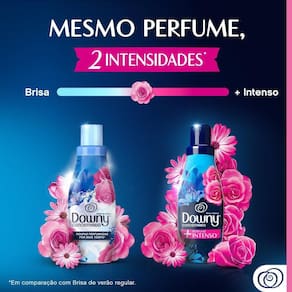 Amaciante Downy Concentrado Brisa Intenso? é uma nova versão do já conhecido e amado Brisa de Verão, de Downy - marca de amaciantes n 1 do Brasil. Com o mesmo perfume? e longa duração nas roupas, mas agora com perfume mais intenso ?, dando às suas roupas um aroma deliciosamente agradável que as transformará em uma verdadeira experiência de perfume, com notas frutadas e florais. Esse amaciante deixa suas roupas macias, protege as fibras dos tecidos durante a lavagem e facilita a passagem a ferro depois de lavar. Além disso, protege a sua roupa contra maus cheiros, incluindo fumaça, cheiro de fritura e peixe, com o benefício adicional de um perfume mais intenso?. Aproveite esse perfume mais intenso? do seu Downy azul, que você já ama, com os mesmos benefícios do seu amaciante favorito.