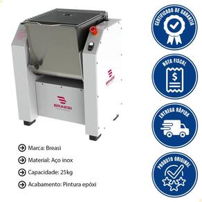 - A Masseira Basculante ou Semirrápida ALI-25 da marca Braesi é perfeita para padarias ou residências que desejam um produto econômico que possa realizar o mesmo trabalho que as mãos, porém sem desconforto e mais rapidamente;