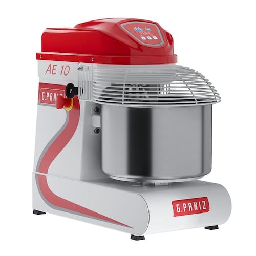 - Capacidade: 10 kg de massa pronta; - Painel de controle digital; Três velocidades: V1 (realiza a mistura inicial dos ingredientes), V2 (amassa e atinge o ponto de véu de massas convencionais e ME (amassa e atinge o ponto de véu de massas especiais com alto nível de hidratação); - Variação de velocidades através de inversor de frequência na versão de três velocidades; - Cuba giratória em aço inox 304 estampada em peça única; - Ampla abertura da grade; - Mecânica robusta com correntes e correias; - Baixo nível de ruído; - Batedor espiral em ferro fundido com revestimento em estanho; - Estrutura robusta e compacta, em aço carbono com pintura branca ou em aço inox.
