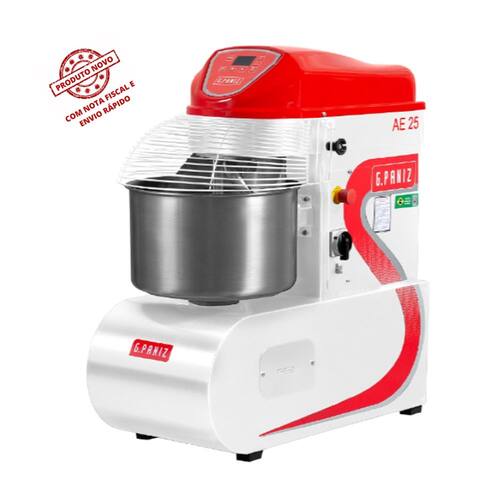 Amassadeira Espiral AE25G2 25kg 2 Velocidades Monofásica 220V G.Paniz Para a produção dos mais variados tipos de massas pesadas de panificação, como pães (francês, baguette, sírio, italiano, caseiro, de forma, integral, hamburguer e artesanal), panetones, donuts, brioches, croissants, empadas e pizzas.A masseira espiral é o equipamento ideal para a produção de massas em regime de trabalho intenso, com baixo nível de ruído, misturando a massa com cuidado, desenvolvendo a estrutura do glúten e atingindo o ponto de véu.
