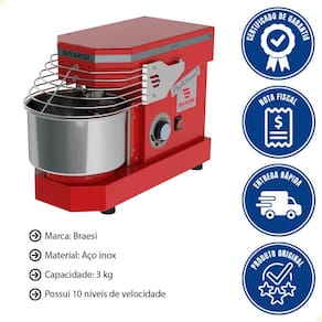 Amassadeira Industrial Espiral Braesi AES-03 Bivolt 3Kg 10 Velocidade Vermelha B18882