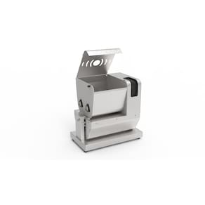 - Estrutura em aço inox escovado - Cuba para 5 kg em aço inox - Sistema basculante com batentes internos - Sistema de pás duplas - Redução por polias e engrenagens helicoidais poliméricas - Tampa com micro-chave de segurança - Design frontal arredondado com visual contemporâneo - Pés antiderrapantes - Equipamento portátil