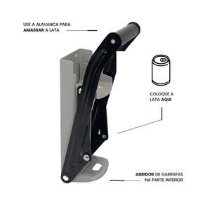 Com um design moderno e portátil, é intuitivo e fácil de usar, ideal para você que não aguenta mais amassar latas do jeito mais dificil, garantindo que a tarefa fique mais fácil e rápido. Conta com um abridor de garrafas na parte de baixo. ============================================================ Contém: 01 Unidade