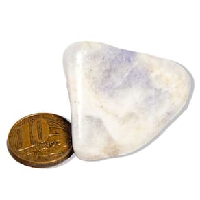 Ambligonita Roxa Rolada, uma pedra rara e única para colecionadores e esotéricos. Com tonalidades que variam do branco ao roxo, esta pedra natural é ideal para energização, meditação e decoração.