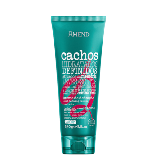 Leave-in para cachos médios a fechados. Amend Cachos Leave-in Cachos + Fechados hidrata intensamente e define enquanto protege dos danos externos. Incentiva a memória dos cachos, que ficam perfeitos todo o dia.