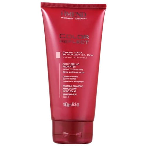 Amend Color Reflect Creme para Blindagem da Cor forma uma camada em torno do fio que mantem a cor e garante uma luminosidade impecável. Você conquista cabelo radiante e protegido no cuidado diário. Ação Proteína do Arroz e Aminocolor: faz uma reparação profunda, devolve a aparência saudável dos fios e mantém a cor na fibra capilar para impedir o ressecamento. Ean: 7896852616055