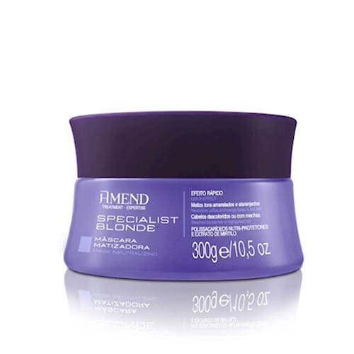 Máscara Matizadora Specialist Blonde Amend - 300GProporciona efeito matizador imediato, neutralizando os indesejáveis tons amarelados ou alaranjados. Fórmula intensificadora com aminoácidos fortalecedores e antioxidantes que doam brilho fortificam e recuperam os fios porosos e danificados, deixando-os mais resistentes.Reg Anvisa: Aut.2.05.591-1 Processo: 25351.316903/2015-65