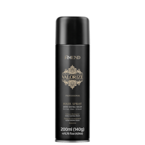 Amend Valorize Hair Spray Ultra Forte traz silicones que protegem os fios da umidade. Seu jato seco não deixa resíduos no cabelo.