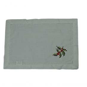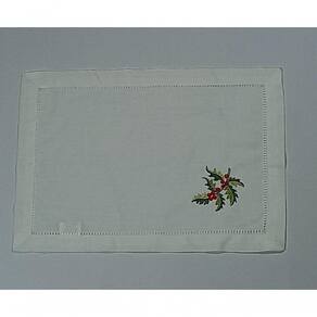 - 1 - Americano De Linho Natal Branco Bordado Com Azevinho 36x50 Cm