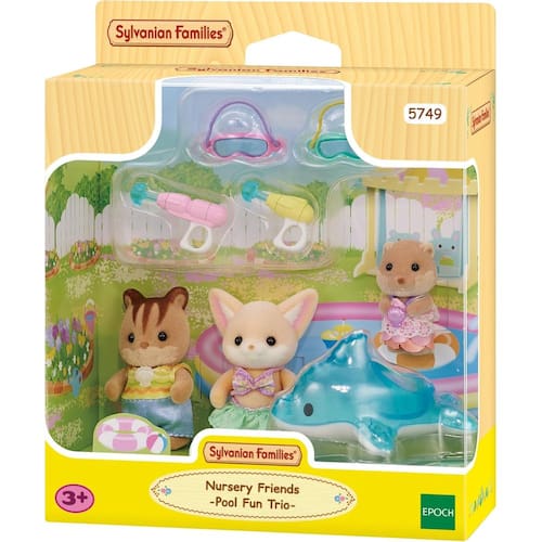 *O conjunto Amigos do Jardim da Infância – Diversão na Piscina é a adição perfeita a qualquer conjunto de jardim de infância! Vem com três bebês. *O golfinho inflável e brinquedos de piscina oferecem muita diversão na piscina. Bebês de berço podem usar o golfinho inflável. *Os bebês estão usando roupas fofas de natação com estampas de onda e botões em formato de concha. *Os bebês podem segurar os brinquedos de piscina e usar os óculos. *A bebê Raposa do Deserto se chama Yulie, o bebê Esquilo Noz se chama Ambrose e o bebê de berço Lontra Brincalhona se chama Nicola. *Combine com o Castelo Ensolarado Jardim de Infância, o Ônibus Arco-Íris Jardim de Infância, o Balanço Jardim de Infância, a Piscina & Caixa de Areia Jardim de Infância e a Família dos Coelhos Floral (vendidos separadamente) para ainda mais diversão. *Combine com bonecos de bebês e bebês de berço (vendidos separadamente) para uma brincadeira ainda mais divertida e imaginativa!
