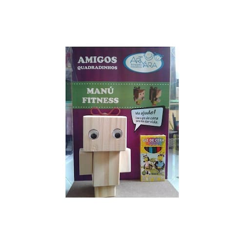 Amigos Quadradinhos Pinta Madeira Manú Fitness - Artyara faz parte da coleção Pop! Bloc, da Artyara. É um boneco em madeira articulado, com 5 peças que se encaixam por botões de pressão em suas junções. Assim, a criança pode montar e desmontar quantas vezes quiser! Mas não é só isso: as peças são feitas em madeira crua, e podem ser pintadas de acordo com a imaginação, com os gizes de cera que acompanham o boneco, ou com guache, lápis de cor, o que a criança escolher! A Manú Fitness vem com olhinhos que se mexem e com um laço divertido. Ótimo brinquedo para estimular a concentração e criatividade da criança.
