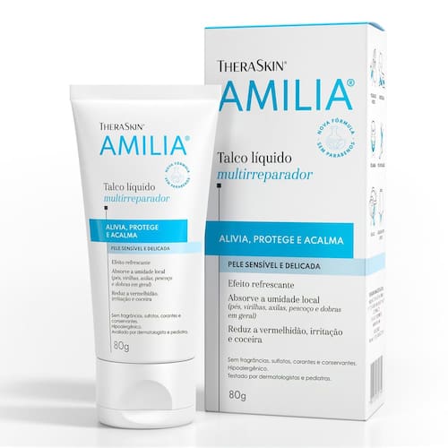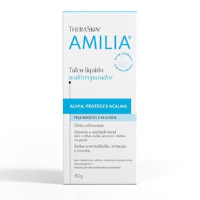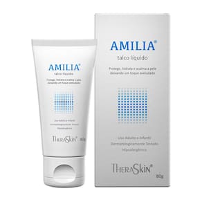 AMILIA THERASKIN TALCO LÍQUIDO Suavidade e refrescância. Dermatologicamente e clinicamente testado para peles sensíveis. Amilia é um talco líquido que confere proteção e emoliência, deixando a pele ma