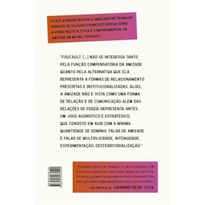 Retorna às livrarias, em edição revista e ampliada, o livro pioneiro de Francisco Ortega sobre a amizade na ótica foucaultiana. Este livro apresenta o estudo de Francisco Ortega sobre a amizade segundo Michel Foucault, explicação contida na etapa ulterior do pensamento do filósofo francês. Fruto da tese de doutorado de Ortega, defendida na Universidade de Bielefeld, na Alemanha, Amizade e estética da existência em Foucault ganha agora sua segunda edição revista e ampliada. Compreender como Foucault ampliou os limites políticos da amizade para pensá-la também como um artifício da ética é um dos prenúncios da análise de Francisco Ortega. Para isso, o autor faz uma revisão do pensamento foucaultiano sobre o corpo e os prazeres, em busca de um entendimento sobre o alcance do desejo na organização social e política da vida. Nessa perspectiva, Foucault individualiza a autoconstrução estética do corpo, tornando-o instrumento marcado por quem nele vive e também por quem com ele se relaciona. A amizade é, portanto, um elo de elaboração da existência, capaz de transbordar as podas morais e os freios de comportamento que são “disciplinados” pelo senso comum de censura da sociedade, dando forma assim a uma “comunidade de singularidades”. Não sem motivo, Foucault aproxima a amizade da homossexualidade, buscando um entendimento de como o afeto experimentado pela comunidade sexualmente diversa molda a experiência de vida. Se hoje o conceito de amizade em Foucault é bem explorado e encontra tantos interessados, muito se deve a este Amizade e estética da existência em Foucault, escrito por Francisco Ortega quando o assunto era ainda pouco explorado e praticamente não havia estudos sobre o tema. Aqui comprovamos a importância de Michel Foucault para o pensamento contemporâneo, em uma obra que engrandece sua influência com empenho e dedicação. “Ortega sustenta, com competência e inteligência, a visão foucaultiana da amizade prazerosa, que seria o núcleo irredutível da estilística da existência.” – Jurandir Freire Costa.