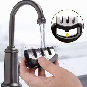 O Amolador Afiador de Facas e Tesouras possui a tecnologia do Aço de Tungstênio, pode amolar simultaneamente 3 cortadores, possui amoladores dupla face em cada divisória, melhorando a velocidade do processo de afiação. Seu design e ângulo exclusivo torna os talheres moídos afiados e duráveis. Um produto simples, fácil de utilizar e limpar, dispensa água e eletricidade para realizar a afiação. Indispensável na sua cozinha.