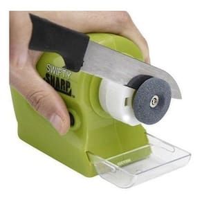 - Equipado com uma pedra de amolar de nível profissional, de alta velocidade, ele afia e restaura o fio da navalha em qualquer lâmina em apenas alguns segundos, desde facas e tesouras e ferramentas manuais pequenas.
