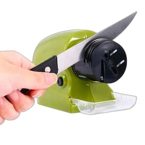 Amolador elétrico multifuncional ideal para facas de cozinha e facões Amolador portátil elétrico afiador tesoura facas ferramentas - afie suas facas, tesouras e outros produtos de uso doméstico com o afiador de lâmina multiuso sem fio. - equipado com uma pedra de amolar de nível , de alta velocidade, ele afia e restaura o fio da navalha em qualquer lâmina em apenas alguns segundos, desde facas e tesouras e ferramentas manuais pequenas. - possui um acessório removível para todas as suas necessidades de afiação sejam grandes ou pequenas. - necessita de 4 pilhas aa não inclusas . - acompanha coletor de pó. - material: plástico - dimensões: Altura: 9 cm Largura: 6 cm Comprimento: 14 cm Marca: Não Informado
