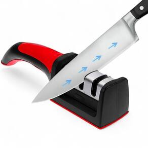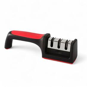 Amolador Vermelho 3 Níveis para Facas Tesouras Mantenha suas facas e tesouras sempre afiadas com este afiador manual 3 em 1. Ideal para uso doméstico ou , ele combina praticidade, segurança e durabilidade. Com estrutura resistente e sistema de afiação em três etapas, proporciona excelente resultado com mínimo esforço. Destaques do Produto: - Design ergonômico: cabo confortável que garante firmeza e segurança durante o uso; - Base estável para afiação segura, evitando acidentes e deslizamentos; - Compacto, leve e fácil de guardar ou transportar. Sistema 3 em 1 com três fases de afiação: Fase 1 - Preparação da lâmina com ajuste do fio; Fase 2 - Afiação precisa para restaurar o corte; Fase 3 - Polimento final com pedra de cerâmica; Especificações Técnicas: - Tipo: Afiador manual 3 em 1; - Cor: Vermelho e Preto; - Aplicações: Facas lisas e tesouras não compatível com facas serrilhadas ou de cerâmica ; - Materiais: Aço inoxidável, plástico ABS e pedras de cerâmica; - Dimensões aproximadas: 21 cm de comprimento x 6 cm de altura x 5 cm de largura; - Cor: Preta com detalhes em prata. Itens Inclusos: - 1x Afiador Manual 3 em 1 para Facas e Tesouras. Instruções de uso: - Deslize suavemente a lâmina por cada estágio na direção indicada. Evite movimentos de vai e vem e não submergir o produto em água. Com esse afiador, você garante cortes mais precisos e seguros na sua rotina culinária