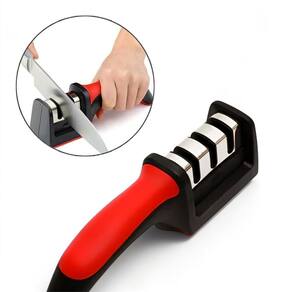 Amolador Vermelho 3 Níveis Para Facas Tesouras