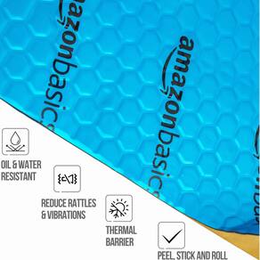 Amazon Basics Amortecedor de som para carro, 35 cm x 25 cm, (10 unidades) pacote com 1 - Amortecedor de som de carro (10 peças) para criar uma experiência no carro mais silenciosa e confortável - Material à prova de som (feito de substrato à base de composto de borracha butílica) ajuda a reduzir vibrações e ruídos irritantes do veículo e da estrada - Forte suporte autoadesivo para colocação segura; folha de alumínio reflexiva na frente para melhor isolamento térmico - Material maleável; fácil de cortar e instalar no interior do veículo, no chão da cabine ou no porta-malas; o kit de instalação inclui instruções - Cada peça mede 36,8 x 25,4 cm; área de cobertura total de 10 pés quadrados; apoiada por uma garantia limitada de 1 ano da Amazon Basics