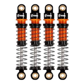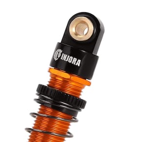 NOTA: Use óleo de choque (não incluído) para adicionar apenas óleo suficiente para um revestimento pesado. Não encha totalmente o corpo do choque. Especificações: Material: Alumínio Cor: dourado Comprimento total: 50,5 mm (1,99 pol.) Comprimento estendido (olho a olho): 45 mm (1,77 pol.) Tamanho comprimido (olho a olho): 31 mm (1,23 pol.) Viagem máxima: 14 mm (0,56 pol.) Cada peso: 2 g - Os amortecedores de viagem longos INJORA Axial FCX24 com rosca de alumínio são uma ótima opção para adicionar viagens ao seu FCX24. - Estes amortecedores são usinados a partir de alumínio e apresentam corpos roscados para ajustes rápidos de pré-carga. - Três taxas de mola estão incluídas, permitindo que você ajuste esses amortecedores no seu chassi. - Internamente, eles usam óleo de choque (não incluído) em vez do típico amortecimento por fricção e empregam vedações da bexiga para amortecimento consistente de rebote. - O acabamento dos amortecedores é bom, sem corrosão e combina muito bem com outras atualizações INJORA