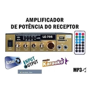 Amplificador áudio receiver bluetooth som 110v usb le-705