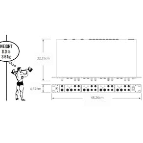 Características Amplificador de fone de ouvido HM-800 • Duas entradas estéreo principais discretas com nível separado controle mais saídas estéreo • Medição de LED de 7 segmentos por canal mais o principal • Duas saídas de fone de ouvido por canal • Oito entradas auxiliares independentes para até oito mixagens estéreo • Chaves de seleção de entrada e estéreo/mono por canal • 16 saídas totais de fone de ouvido • Construção Built-Like-A-Tank Amplificador de fone de ouvido HM-800 Amplificador de fone de ouvido de 8 canais HM-800 de 19" para montagem em rack oferece até 10 mixagens disponíveis com um total de 16 fones de ouvido saídas. Perfeito para aplicações profissionais, incluindo estúdios, Casas de Adoração, espaços de prática e muito mais. Apresentando dois entradas principais discretas com controle de nível mais saídas estéreo, entradas por canal.