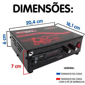 A Trinity Street Kombat é ideal para propagandas volantes de rua, como produtos de limpeza, carros de pamonha, divulgação de ofertas de supermercado, festas na região, ações comunitárias, etc. Sua ligação é simples e não requer uma instalação por um profissional da área. Basta conectar a alimentação da bateria do seu carro 12V e conectar a sua Caixa, Driver, Super Tweeter, etc, no borne de conexão de saída de áudio do amplificador.