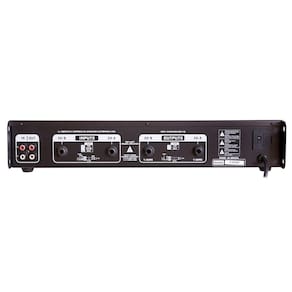 Especificações TécnicasClasse Dpotência máxima total : 200W RMS / 4 Ohmspotência máxima por canal : 100W RMS / 4 Ohmsentradas inputs cha e chb : 02 P10in - a e b : 01 RCA STsaídas outputs cha e chb : 02 P10out - a e b : 01 RCA STvu gráfico : 5 LEDSproteção : LED Overload /Curtofusível ampere : Fusível 2Aconsumo total : 240Wcapacitância da fonte : 4700uFresposta de frequência : 10 Hz a 20K Hzimpedância de frequência : 10 KW, 10 Hz a 10 kHzalimentação vac : 127/220dimensões mm : H 90 X L 490 X P 220peso kg : 3,6
