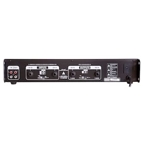 Especificações Técnicas Classe D potência máxima total : 200W RMS / 4 Ohms potência máxima por canal : 100W RMS / 4 Ohms entradas inputs cha e chb : 02 P10 in - a e b : 01 RCA ST saídas outputs cha e chb : 02 P10 out - a e b : 01 RCA ST vu gráfico : 5 LEDS proteção : LED Overload /Curto fusível ampere : Fusível 2A consumo total : 240W capacitância da fonte : 4700uF resposta de frequência : 10 Hz a 20K Hz impedância de frequência : 10 KW, 10 Hz a 10 kHz alimentação vac : 127/220 dimensões mm : H 90 X L 490 X P 220 peso kg : 3,6 Ean: 7898623882850
