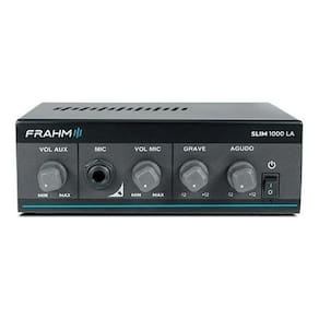 Amplificador Slim 1000 La G2 Frahm 40w Rms Bivolt AutomáticoOs amplificadores da linha SLIM foram desenvolvidos com a mais alta tecnologia em engenharia de áudio. Seus componentes são de alto nível, garantindo reprodução sonora de alta definição. Agora com novo visual e uma parceria exclusiva com mais de 5 playlists Frahm pensadas para o seu ambiente! O amplificador Slim 1000 LA G5 da Frahm possui 40 Watts RMS de potência e é ideal para pequenos ambientes. Possui entradas auxiliar (RCA) e de Microfone.Especificações Técnicas:• Potência: 40W RMS• Amplificador: Classe AB• Canais de Saída: 1 Canal Mono• Conexões de Entrada: 1 entrada auxiliar RCA• Conexões para Microfone: 1xP10• Entrada de Nível Alto: 1x• Sensibilidade do AUX: 350m VRMS• Impedância do AUX: 20K"• Equalizador: Graves e Agudos• Bivolt Automático: 90V-240V• Dimensões do Produto: 58x152x135mm (AxLxP)• Peso Líquido: 450g• Peso: 820 gConteúdo da Embalagem:• Amplificador Slim 1000 La G2 Frahm 40w Rms Bivolt Automático• Controle do Amplificador• Manual e Certificado de GarantiaImportante:• Garantia de 273 Dias• Valor Unitário