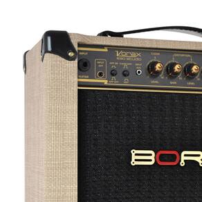 Alto-falante de 6 25W RMS Exclusiva entrada para aplicativos de efeitos P2 de quatro terminais Controle de grave, médio e agudo para o canal limpo, distorção, efeitos app e auxiliar Ajustes de ganho e volume para o canal de distorção Ajuste de volume para o canal limpo, efeitos app e auxiliar Saída para fone de ouvido Saída de linha Entrada aux. Para conectar celular, notebook, etc Chave de acionamento do canal de distorção Proteção térmica do circuito de amplificação Alça de couro Acabamento em curvim preto e palha. Chave comutadora de tensão 110V ou 220V AC Peso Sem embalagem: 5,4Kg Com embalagem: 5,8Kg Dimensões Sem embalagem L x A x P : 39,5 x 33 x 20 cm Com embalagem L x A x P : 43 x 37 x 24 cm Homologação Anatel: 060792000160 Ean: 7908105300755