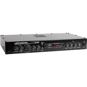 Amplificador hayonik ms4000 400w rms multisetores O amplificador para ambientes hayonik ms4000 é um modelo que permite ao usuário controlar individualmente o volume de até 4 setores. Com 400w de potência rms, é ideal para todos os tipos de ambiente. Possui entrada de microfone, entrada usb para pen-drive, rádio fm, conexão bluetooth, entrada sd card, entrada para microfone e duas entradas auxiliares rca para aparelhos eletrônicos. Possui também a função gongo eletrônico, que quando acionado emite um alerta para uma mensagem. Este amplificador permite ainda a expansão para mais canais conforme a necessidade do cliente. Utilizando-se o ems4000 hayonik. produto vendido separadamente . Equalização:grave, agudo, volume mic, volume aux, volume master Alimentação:bivolt Peso:1,70kg Consumo de energia:560 va Canais:4 Potência:400w rms Impedância:4 ohms Entradas:p10 mono/rca Saídas:até 2 caixas de 8 ohms por canal Dimensões:401 x 54,7 x 145,5mm Thd:0,05% Pesquisa:amplificadormulti setoreshayonikamplificador hayonik modos: usb, sd, bluetooth, fm tensão de rede: 127/220 - vac 60hz controle remoto: sim sensibilidade: microfone/guitarra 15mv linha: 775mv auxiliar 250mv gongo: sim Conteúdo da embalagem: 01 amplificador ms 4000 01 manual do proprietário e o certificado de 01 controle remoto 01 bateria para controle remoto Homologação Anatel: 112572013224 Marca: Não Informado Ean: 7899638111676