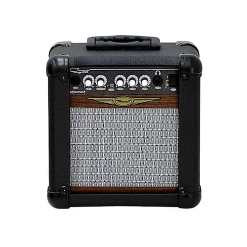 Amplificador oneal para guitarra ocg-50-cr - 20 watts O ocg50 é um amplificador compacto indicado para iniciantes e estudantes de música, com 20w rms ele tem bom volume para uso em pequenos ambientes e possui dois canais clean/limpo e drive/distorcido , além disso ele possui saída para fones de ouvido que quando em uso silencia o amplificador. Especificações 20 watts rms 1 alto falante de 6" Tecla de seleção clean/drive Controle de graves, presence e agudos Controle de ganho Controle de ganho de overdrive Entrada para guitarra p10 1/4" Seletor de tensão de rede 120/220v Consumo máximo 35w Dimensões altura x largura x profundidade - 280 x 260 x 158 mm Peso líquido 3,7kg Fornecedor - oneal áudio Homologação Anatel: 060792000160